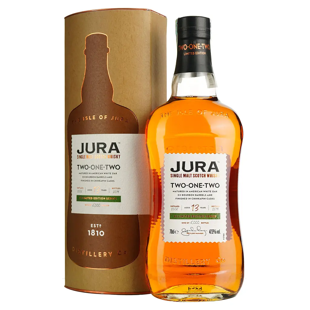 Виски Isle of Jura 212 Two-one-Two имеет насыщенный золотисто-янтарный цвет с яркими янтарными оттенками. Аромат этого виски открывается нотами меда, ванили и запеченного яблока с добавлением легких оттенков тропических фруктов, таких как ананас и манго. Во вкусе сочетаются сладкие медовые нотки с фруктовыми акцентами, постепенно переходящие в более глубокие, дубовые и специальные оттенки. Легкие торфяные и дымные нотки придают виски характеру, при этом сохраняя мягкость и гармоничность. Послевкусие долгое и теплое, с ванильно-дубовыми и легкими сладкими фруктовыми нотами.