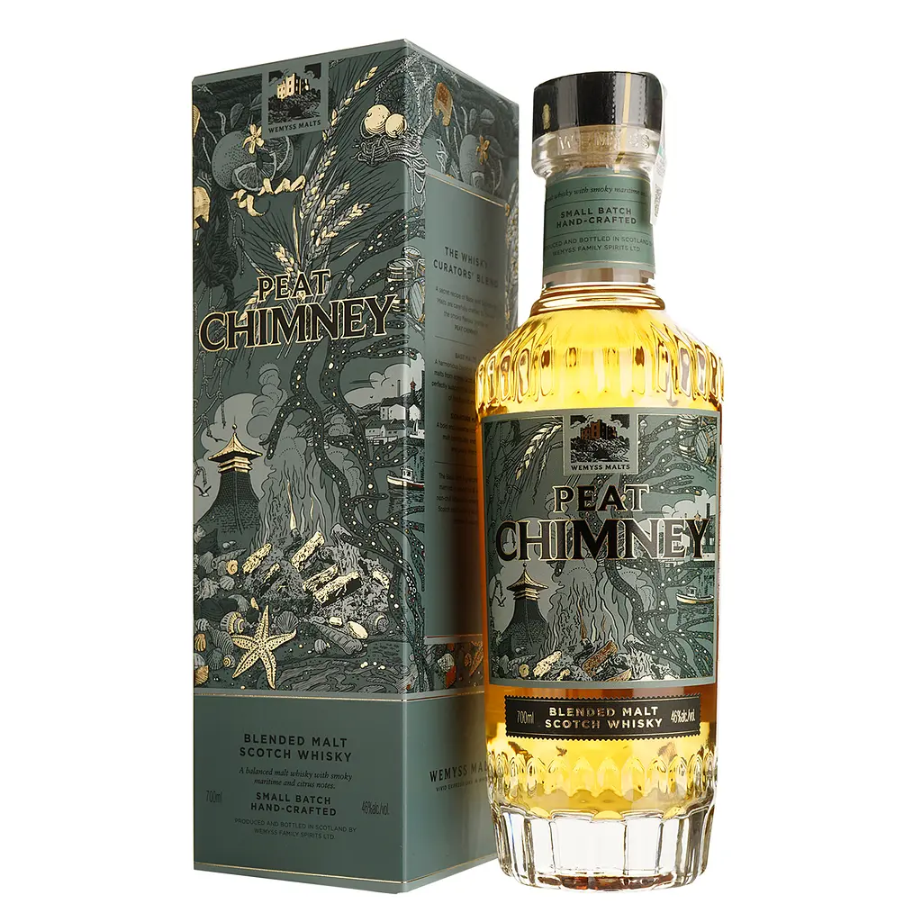 Виски Wemyss Malts Peat Chimney Blended Malt - один из самых выдающихся представителей скотча, сочетающий богатый аромат и непревзойденный вкус. Напиток демонстрирует янтарный цвет с золотистыми бликами. Гармонический букет соткан из нот засахаренных фруктов, ванили, выпечки и марципана. Мягкий, шелковистый, теплый вкус наполнен нотами солода, имбиря, дуба, нюансами сладкого мармелада и ванили. Послевкусие длительное, с дымными тонами.