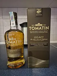 Вперше спробував Tomatin Legacy — зайшов. Такий лайтовий варіант односолодового піскаря. Не б’є в ніс та язик. Для випити для задоволення саме те..