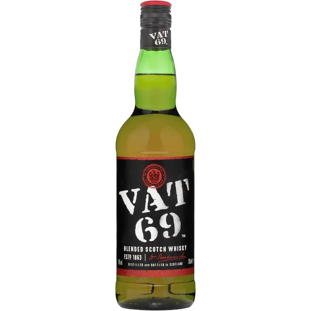 Купаж "VAT 69" состоит из смеси 40 сортов виски. Односолодовый виски, входящий в состав купажа, составляет около 35% от общего количества спиртов. Благодаря смешиванию такого количества ингредиентов, "VAT 69" от William Sanderson and Son Limited имеет такой мягкий, округлый вкус, который по достоинству смогут оценить настоящие любители высококачественного виски.