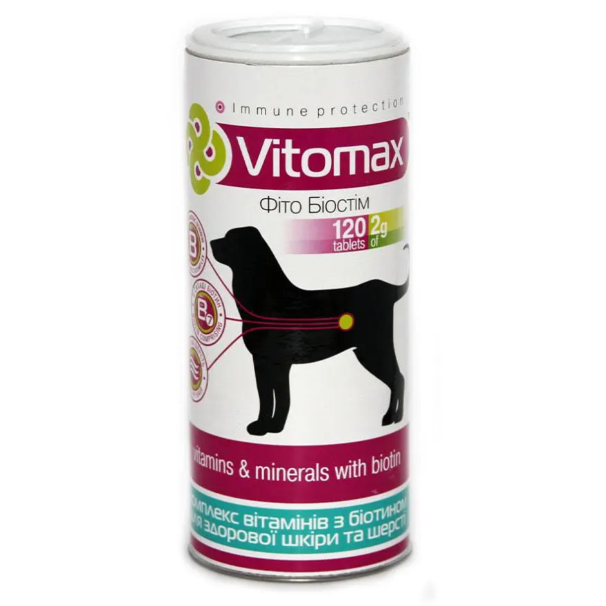 ОПИСАНИЕ Прекрасная кожа и густая, блестящая шерсть у собак — показатель крепкого здоровья. Для достижения хорошего внешнего вида домашний питомец должен получать все необходимые питательные вещества, такие как протеины, биотин и витамины, а также иметь крепкий иммунитет. Благодаря витаминно-минеральному комплексу ТМ Vitomax «Для шерсти и кожи собак с биотином» у собак наблюдается улучшение состояния кожных и шерстных покровов, исчезновение различных кожных заболеваний. Научный и практический подход к разработке продукта дает превосходный результат и полностью соответствует физиологическим потребностям животного. Благодаря натуральным ингредиентам высочайшего качества, собаки едят его с удовольствием. СОСТАВ Биотин, экстракт подмаренника, экстракт корней лопуха, сухое обезжиренное молоко, животные и растительные белки, глюкоза, ячменно-солодовый экстракт, аскорбиновая кислота, DL-метионин, ниацинамид, стеарат кальция. 100 г продукта содержат: - основной состав: сырой протеин 40%, сырой жир 0,7-1%, влажность 6-7%; - минералы: кальций 468 мг, фосфор 556 мг, цинк 1 мг, магний 101 мг; - витамины: витамин Е 370 мг, витамин С 770 мг, витамин В1 120 мкг, витамин В2 700 мкг, витамин В6 120 мкг, витамин РР 480 мкг; - ниацинамид 150 мг; - биотин 15000 мкг. ПОКАЗАНИЯ Витамины «Для шерсти и кожи собак с биотином» применяются с целью: - улучшения состояния кожи и шерсти; - укрепления иммунной системы; - нормализации обмена веществ; - для профилактики таких явлений, как зуд, постоянная линька, перхоть, выпадение и ломкость шерсти, ухудшение пигментации. Особенно полезно применять для длинношерстных пород и при подготовке собак к выставкам. Суточная норма — 1 таблетка на 10 кг веса собаки. Удвоить дозу для кормящих, беременных и ослабленных собак. Курс составляет 30 дней, рекомендуемая частота приема — 1 раз в 3 месяца. Предостережения и противопоказания отсутствуют. Срок годности: 18 месяцев.