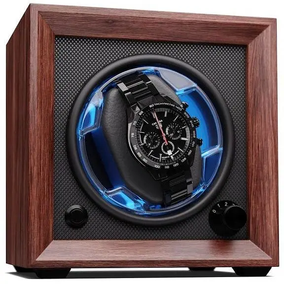 С заводным механизмом для часов Klarstein Brienz 1 ваши элегантные компаньоны готовы к использованию в любое время и в надлежащем состоянии. Автоматические часы, хранящиеся в устройстве, постоянно заводятся с помощью 4 режимов вращения, имитирующих движение запястья. Вращение также способствует уходу за часовым механизмом, поскольку оно эффективно противодействует склеиванию масляного пятна.Механизм завода часов Brienz 1 поражает элегантным деревянным корпусом, который стильно вписывается в любую комнату. Стильное встроенное синее светодиодное освещение можно регулировать с помощью простой и интуитивно понятной операции. Справа находится практичная поворотная ручка для настройки нужного режима. Благодаря встроенной подушке из пены с эффектом памяти часы разных размеров браслета, а также женские и мужские часы можно легко использовать в заводе. Питание подается через кабель USB, который можно использовать с любым источником питания USB и поэтому полностью не зависит от предпочтительного типа розетки.