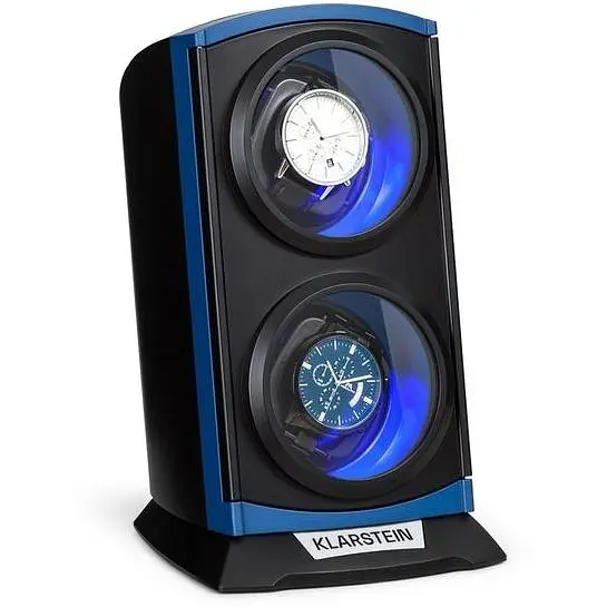 Устройство для завода часов Klarstein St. Gallen Premium может помочь вам сохранить и привлекательно представить ваши автоматические часы. Два хронографа одновременно размещены на двух поворотных столиках и вращаются, чтобы механизмы работали непрерывно, даже если их не носить. При этом часы оформлены стильно. Благодаря четырем выбранным скоростям вращения и отдельной регулировке направления хода вы можете оптимально адаптировать механизм к своим часам. Автоматические часы хотят и должны видеть! Элегантный дизайн завода часов Klarstein St. Gallen Premium учитывает это. Его корпус из ударопрочного пластика может обеспечить наилучший обзор часов с двумя обзорными окошками из акрилового стекла. Синее светодиодное освещение может обеспечить правильное освещение.