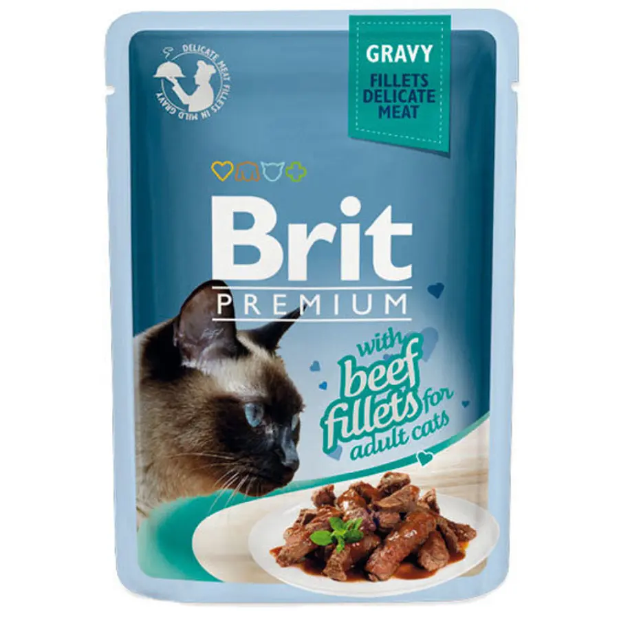 Влажный корм для взрослых кошек Brit Premium Cat содержит все необходимые витамины и минералы для полноценного питания.