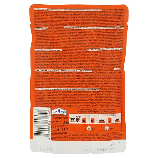 Влажный корм для кошек Club 4 Paws Premium макрель в соусе - питательный, вкусный и полноценный рацион для вашего питомца.