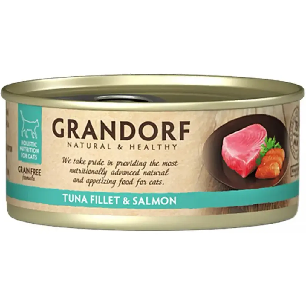 Grandorf - полностью натуральное питание для кошек из отборного мясного и рыбного филе класса Холистик, приготовленное в собственном соку. Используется только отборное парное и охлажденное, а не замороженное сырье.