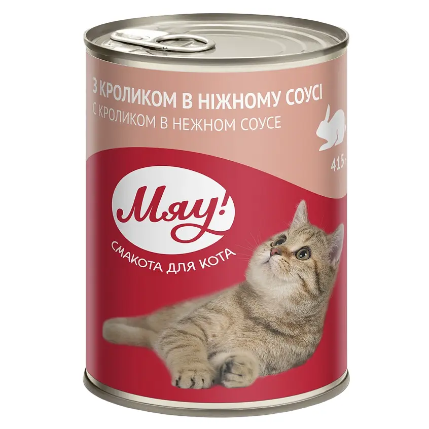 Влажный корм для кошек Мяу, кролик в нежном соусе - полнорационный корм для взрослых кошек