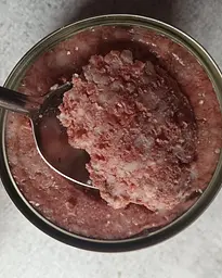 Замовила цю консерву вперше і не пожалкувала. Маса фаршеподібна, пахне приємно. Хотілось би побачить в опису % співвідношення рису і м'яса, а його немає. Бо візуально багато рису . Але моїй собаці сподобалось ( хоча в їжі ну дуже перебірлива). Додаю фото