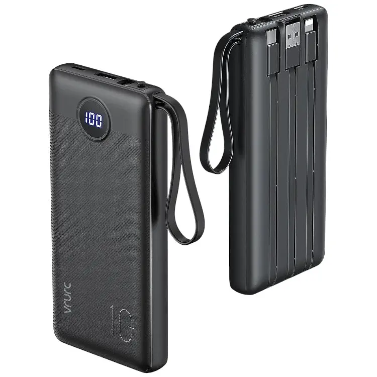 VRURC 10000mAh Power Bank со встроенными кабелями, USB C Battery Pack Портативное зарядное устройство с 5 выходами 2 входа Powerbank Светодиодный дисплей совместимый с iPhone 14 13 12 Samsung S21 S20 Xiaomi