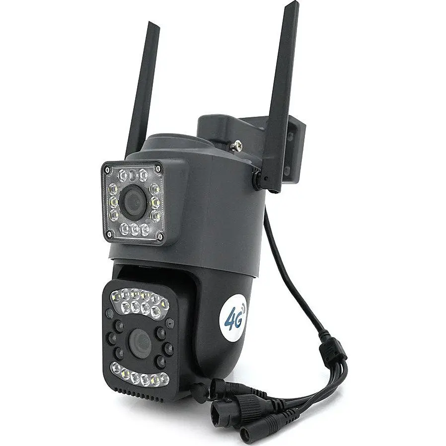 Видеокамера 4G Wi-Fi уличная с двумя объективами 2+2mpx YOSO YOIPC41D4MP50 PTZ 2.8mm V380. Уличная камера IP 4G 2+2 МП ночная подсветка 2 камеры работает в отдаленных местах, где нет проводного подключения интернета