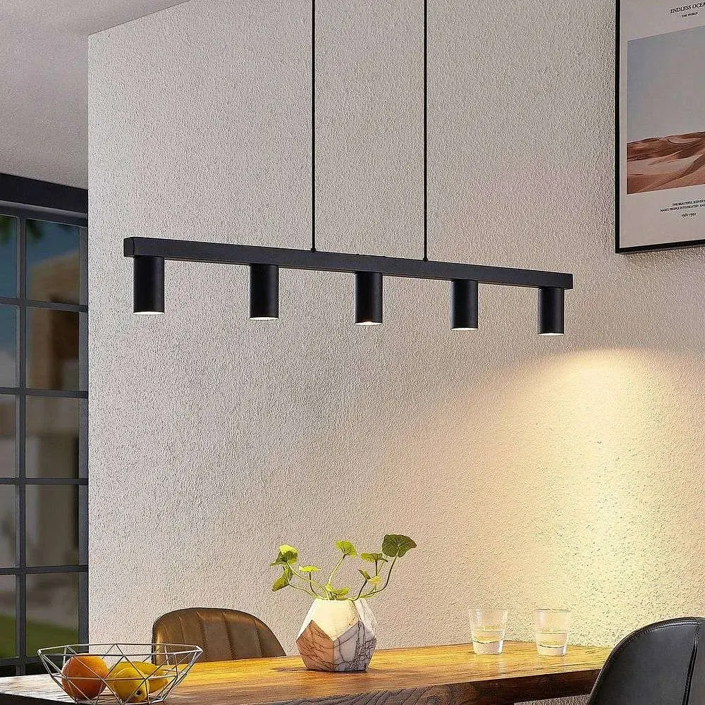 Стильная минималистичная модель люстры Baliko в удлиненном корпусе черного цвета с 5 плафонами-спотами. Длина корпуса люстры - 100 см, ширина - 6 см. Размер спота - 11х6 см. Особенностью данной модели есть 3 режима освещения на спотах. Цоколь Е27 на 5 ламп. Высота люстры регулируется от 35 до 65 см благодаря трубкам 20 и 30 см. Расстояние между креплением 25 см. Крепление монтажная планка 10 см в двух точках. Серия люстр Baliko с плафонами-спотами представлена в 2-х цветах корпуса: латунь и черный. Благодаря своему дизайну эта серия люстр может быть использована как в кафе, ресторанах, так и в доме, в креативных просторах, шоурумах. Тип выключателя: 6 Серия: MJ 119/5 Цвет основы: Черный Размер потолочной основы: 10х2.5 см Максимальная высота: 65 см Минимальная высота: 35 см Тип цоколя: E27 Размер плафона: 11х6 см Материал основы: Металллл Размер монтажной планки: 10 см Тип крепления: Монтажная планка Количество источников света: 5