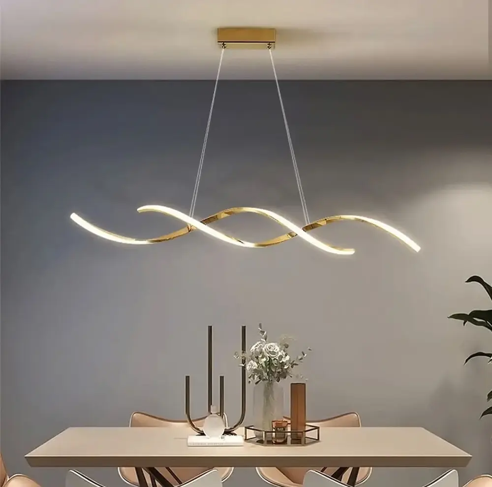 Современная удлиненная подвесная люстра-реплика Gemo LED - это утонченное сочетание минимализма и функциональности, идеально впишется в интерьеры в стилях лофт, скандинавский или хай-тек. Ее уникальный дизайн напоминает две волнообразные линии, обтекающие друг друга, создавая динамический визуальный эффект. Модель доступна в четырех цветах корпуса: белом, черном, золотом и хромированном, что позволяет легко интегрировать ее в различные палитры помещений. Длина металлического каркаса составляет 100 или 120 см, а ширина - 12-15 см, в зависимости от модели. Высота подвеса регулируется, что обеспечивает гибкость в установке светильника на разной высоте потолка. Люстра оснащена встроенными светодиодами с тремя режимами освещения: теплым, нейтральным и холодным светом, что позволяет создавать желаемую атмосферу в помещении. Мощность варьируется от 47 Вт для моделей длиной 100 см до 56 Вт для моделей 120 см. Это делает люстру эффективным источником света для просторных комнат, таких как гостиные, столовые или офисы. Благодаря своему стильному дизайну и функциональности люстра Gemo LED станет не только источником освещения, но и эстетическим акцентом в вашем интерьере. Тип цоколя: 12 Тип помещения: Люстры для гостиной (в зал) Форма_изделия: Прямоугольная Серия: H 18 Цвет основы: Золотой Подключение: Через блок Размер потолочной основы: 22х6х3 см Цветовая температура: 3000K,4500K,6500K Максимальная высота: 115 см Минимальная высота: 20 см Материал основы: Металллл Размер монтажной планки: 22 см Тип крепления: Монтажная планка Мощность (Вт): 47