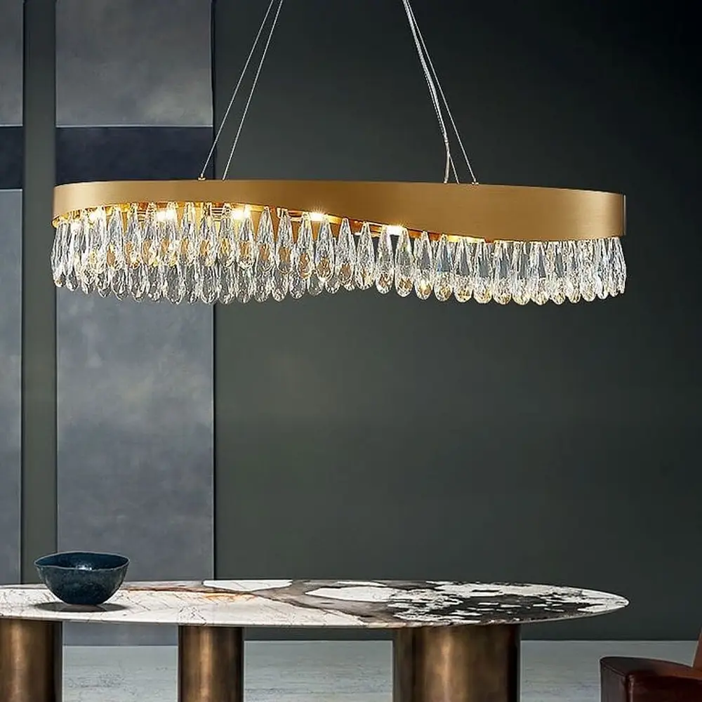 Удлиненная подвесная люстра Xavier с хрустальными камнями Цвет основания: 100 Тип помещения: Люстры для гостиной (в зал) Форма_изделия: Овал Серия: MD 9132 Размер потолочной основы: 22х10х4 см Цветовая температура: 4000К Максимальная высота: 150 см Минимальная высота: 20 см Материал основы: Металл Цвет хрусталя: Прозрачный Тип крепления: Крестовина Мощность (Вт): 50