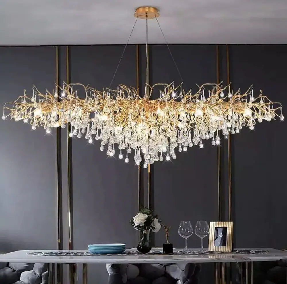 Форма люстры состоит из органических форм, в которых непропорциональные и неравномерные линии создают совокупность эксклюзивных и уникальных композиций, основанных на элементах природы. Тип помещения: Люстры для гостиной (в зал) Форма_изделия: Овал Серия: MD 9005 Цвет основы: Золотой Максимальная высота: 185 см Минимальная высота: 55 см Тип цоколя: G9 Материал основы: Алюминий Цвет хрусталя: Прозрачный Размер монтажной планки: 15 см Тип крепления: Монтажная планка Количество источников света: 18