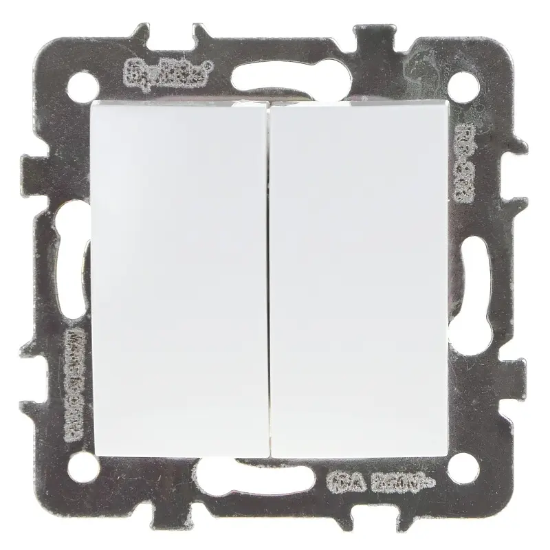 В современном доме стены в ванной и на кухне обязательно должны быть из итальянской плитки, пол из натурального дерева, а выключатели из магазина Brille. Новинка в ассортименте электрической фурнитуры – двухклавишный выключатель RB-2V из серии Rodos идеально впишется в современный интерьер, не утяжеляя его внешний вид. Корпус выключателя изготовлен из пластика, который не выгорает и не теряет свои технологические характеристики со временем. Внутренние детали изготовлены из прочного термостойкого пластика, который не горит. Токопроводящие элементы отпрессованы из материалов, которые содержат высокий процент меди. Посеребренная контактная группа обеспечивает надежный контакт и предотвращает подгорание. Элементы крепления и металлические детали имеют антикоррозийное покрытие. Элементы крепления позволяют устанавливать изделие в монтажные коробки, а также в проем тонкостенных перегородок (гипсокартон, ДСП, ДВП и т.д.). Выключатель белого цвета.
