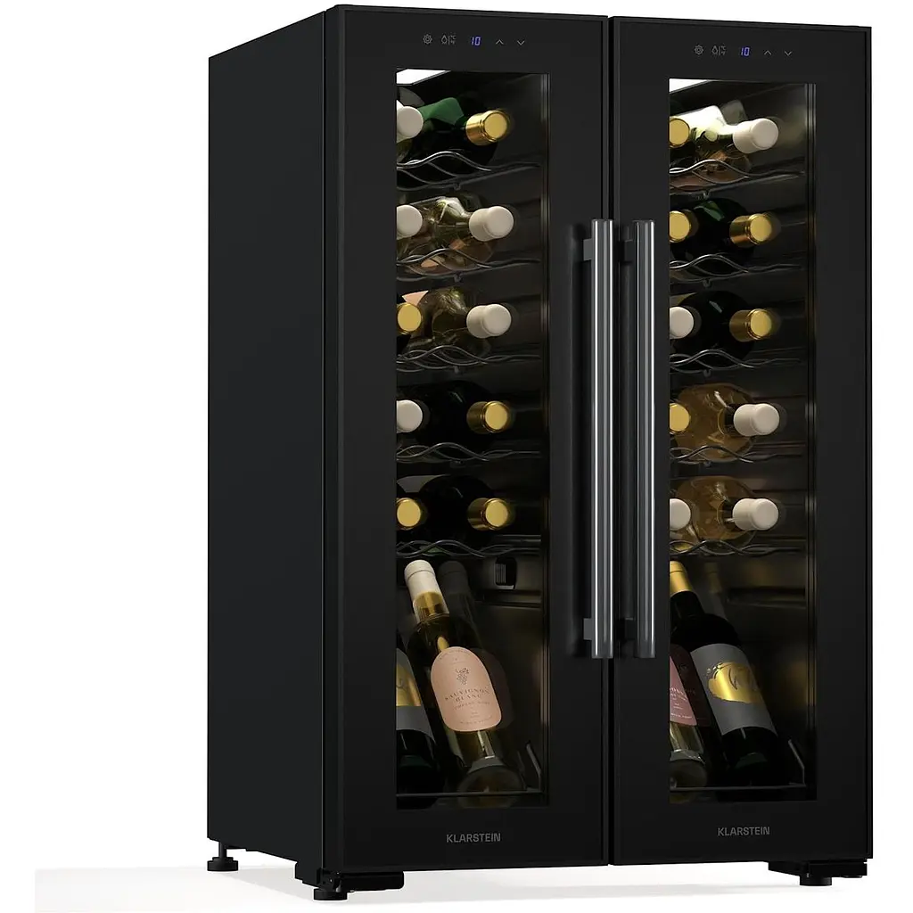 Винный холодильник Klarstein Shiraz - идеальный выбор для любителей вина, которые хотят оптимально хранить и представлять свои изысканные вина. Этот винный холодильник не только предлагает место для 24 бутылок, но и обеспечивает идеальную температуру для красных и белых вин благодаря двум независимо регулируемым зонам охлаждения. Стильное светодиодное освещение подчеркивает вашу коллекцию вин и добавляет элегантную атмосферу в любую комнату. Элегантный современный дизайн холодильника гармонично вписывается в самые разные стили интерьера, а его отдельно стоящая конструкция обеспечивает максимальную гибкость в размещении.