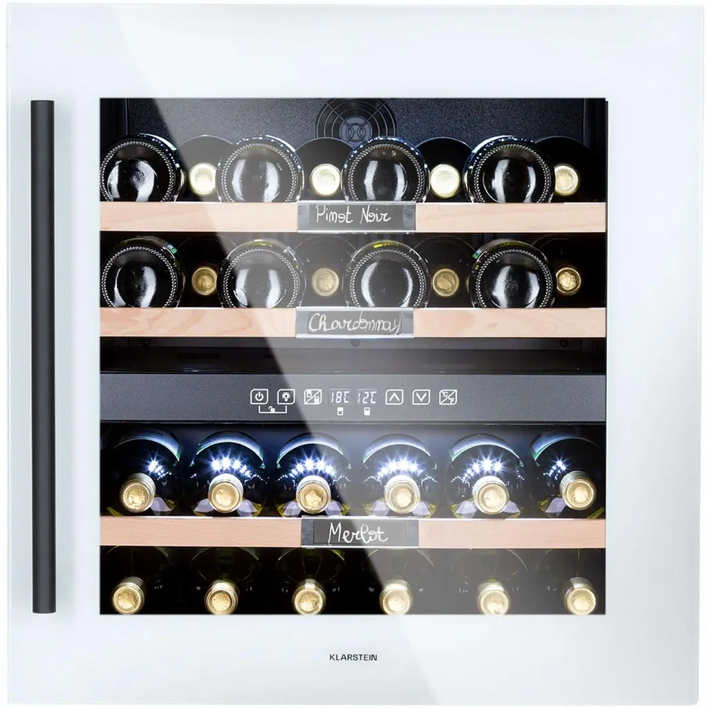 Винный холодильник Klarstein Vinsider 36 Quartz Edition : оптимальное хранение вина гарантирует наилучшие впечатления от дегустации! Этот элегантный двухзонный винный холодильник позволяет хранить 36 бутылок изысканного вина до идеальной температуры, обеспечивая их длительное хранение и красивую подачу. Стеклянная дверца с панорамным окном и полки с возможностью надписей обеспечивают отличный обзор, а бутылки надежно защищены от вибрации и света. Этот встраиваемый двухзонный винный холодильник идеально впишется в интерьер любой кухни.