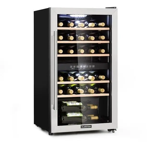 Винный холодильник Klarstein Vinamour 29 Duo может обеспечить наилучшее наслаждение от вина. Благодаря двум отдельным зонам охлаждения, он одновременно может обеспечить нужную температуру питья для красных и белых вин. Это создает роскошную атмосферу и представляет изысканные вина особым образом - белое освещение элегантно акцентирует внимание на сохраняющейся вине, и вы имеете четкий обзор всего через панорамные стеклянные двери. 2-зонный винный холодильник прекрасный для каждого любителя вина.