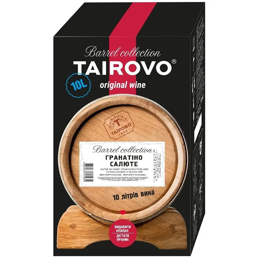 Винный напиток Таирово Гранатино Салюте может иметь цвет от красного до темно-красного с легкими оттенками граната. Аромат чистый, слаженный, с нотами характерных красных фруктов. Вкус гармоничен, интересный, глубокий, с фруктовыми акцентами.
