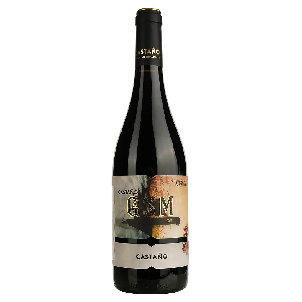 Вино Bodegas Castano Castano GSM имеет насыщенный темно-красный цвет. Аромат раскрывается нотами красных фруктов и сливового джема. Вкус сочный, с мягкими танинами, тонами красной смородины и ежевики, оттенками ванили и какао. Послевкусие изысканное и очень приятное.