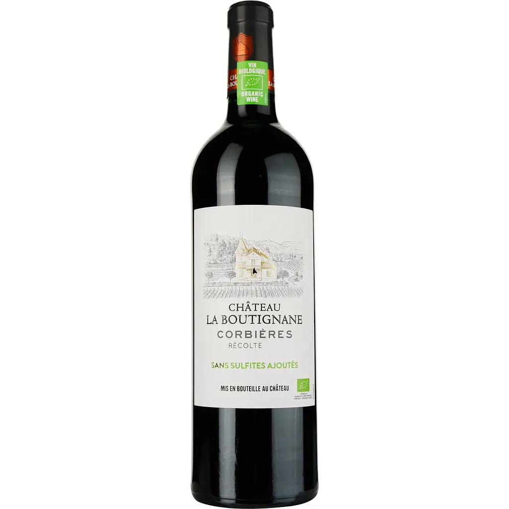 Вино Chateau La Boutignane Sans Sulfites 2022 Corbieres AOP рубиново-красного цвета, с фруктовыми ароматами. Вкус мощный и выразительный, с оттенками спелых красных фруктов.