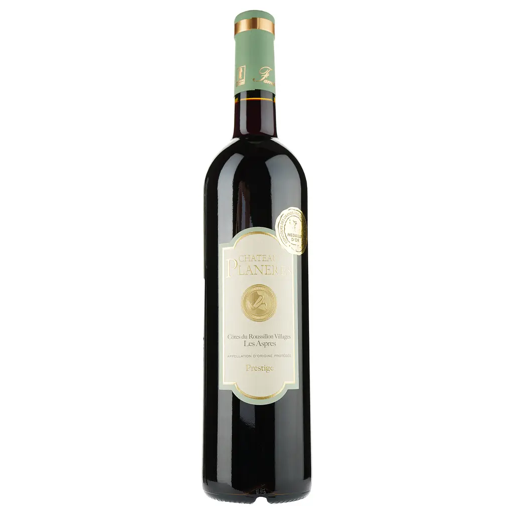 Вино Chateau Planeres Prestige Rouge AOP Cotes du Roussillon Village глубокого красного цвета. Интенсивный фруктовый аромат раскрывается нотами ежевики и клубники. Насыщенный, полный вкус с зернистыми танинами, наполнен ягодными оттенками с приятной кислотностью и элегантным послевкусием.