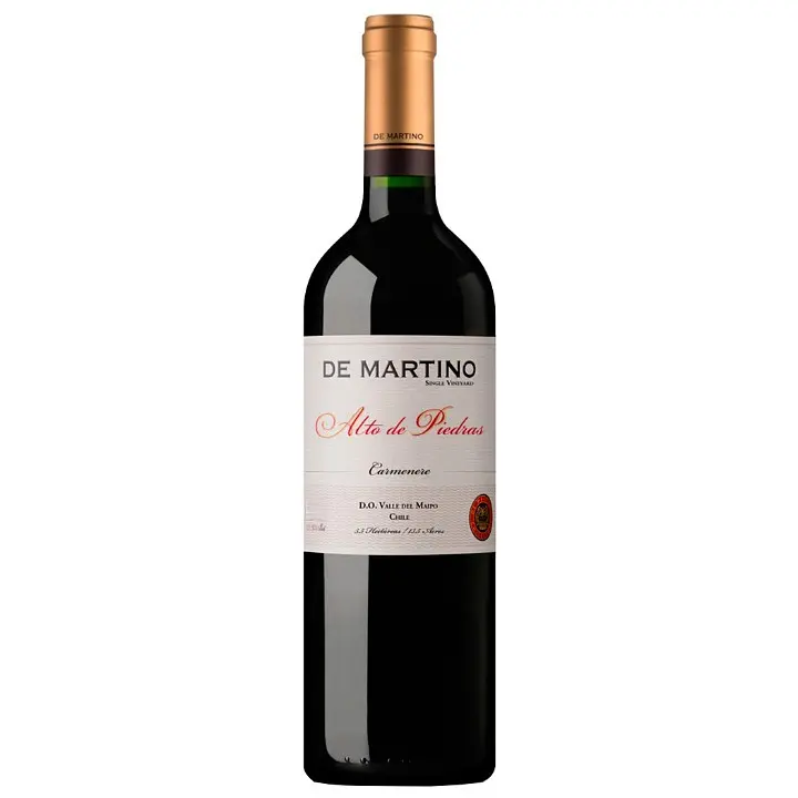 Вино De Martino (Де Мартино) Single Vineyard Alto De Piedras Carmener изготовлено из отборного винограда, придерживаясь традиционных методов винификации.