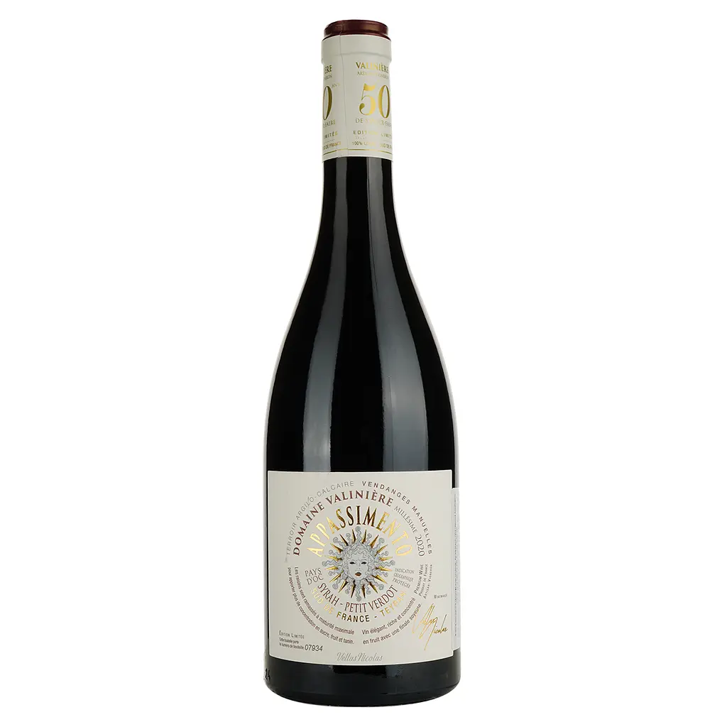 Вино Domaine Valiniere Appassimento Rouge IGP Pays D'Oc темно-вишневого цвета с темно-фиолетовыми бликами. В аромате преобладают сложные нотки спелой вишни, ежевики, сливы и оттенки мелких черных фруктов. Во вкусе вино хорошо обволакивает, тающее, имеет прекрасную кислинку и утонченность. Шелковистые танины очень хорошо сбалансированы и делают вино теплым. Послевкусие продолжительное и фруктовое.