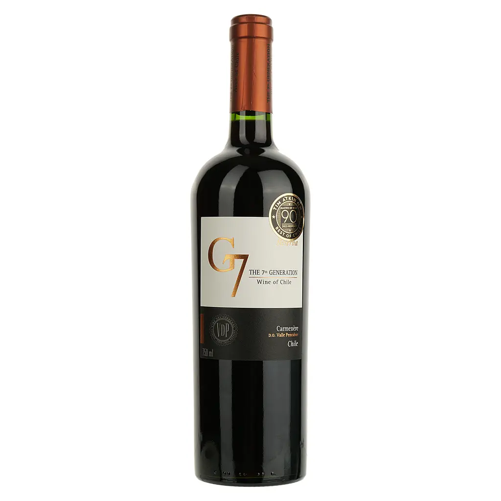 Вино G7 (Джи7) Reserva Carmenere изготовлено из отборных сортов винограда. Имеет прозрачный насыщенный рубиновый цвет.