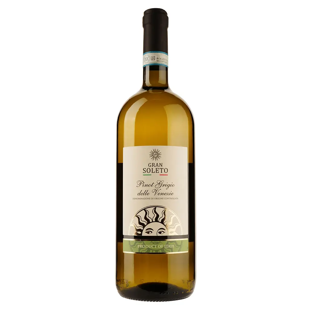 Вино Gran Soleto (Гран Солето) Pinot Grigio Delle Venezie изготовлено из отборного винограда сорта Пино Гриджио, обладает сбалансированным, освежающим, фруктовым характером.