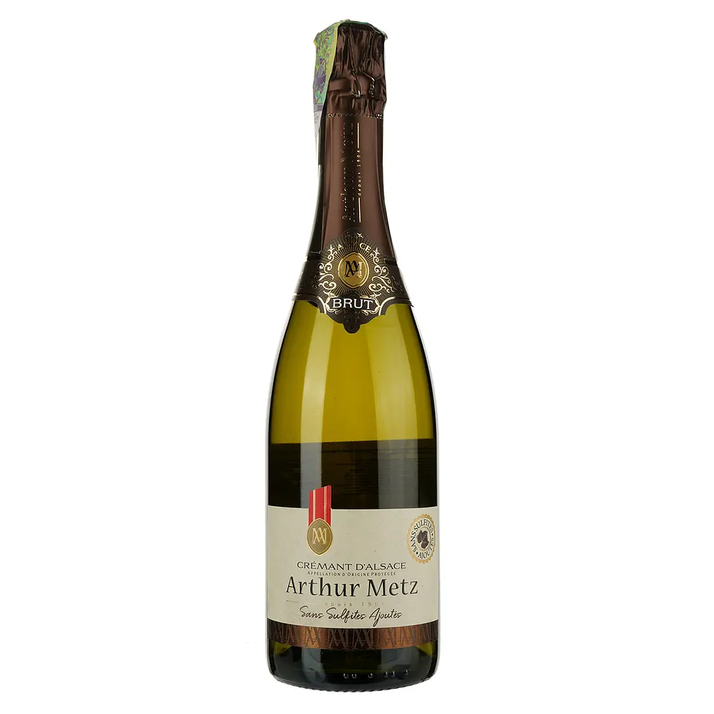 Вино игристое Arthur Metz Cremant D'Alsace No Sulphites желто-соломенного цвета с золотистыми бликами и элегантным перляжем. Демонстрирует свежий аромат с тонами душистой груши, айвы, жасмина, которые дополняются можжевельником, любистком и зеленым болгарским перцем. Вкус сухой, с тонами акации и груши, сбалансированной кислотностью и стойким фруктовым послевкусием.