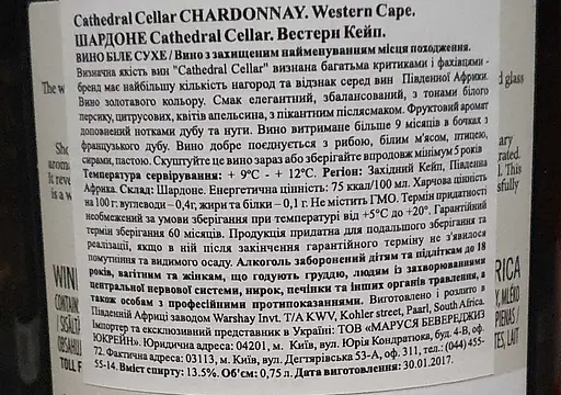 Вино KWV (КВВ) Cathedral Cellar Chardonnay характеризуется хорошо сбалансированным и утонченным вкусом.