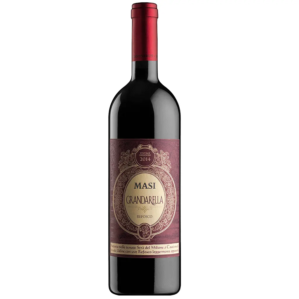 Вино Masi (Маси) Refosco delle Venezie IGT Grandarella - элегантное красное вино, изготовленное из винограда сортов Рефоско и Карменере. "Грандарелла" — это специальный метод сушки винограда на стеллажах, который используется при изготовлении вина. Выдерживается вино в бочках из французского и славонского дуба в течение 2-х лет. Потенциал хранения вина составляет 10-15 лет.