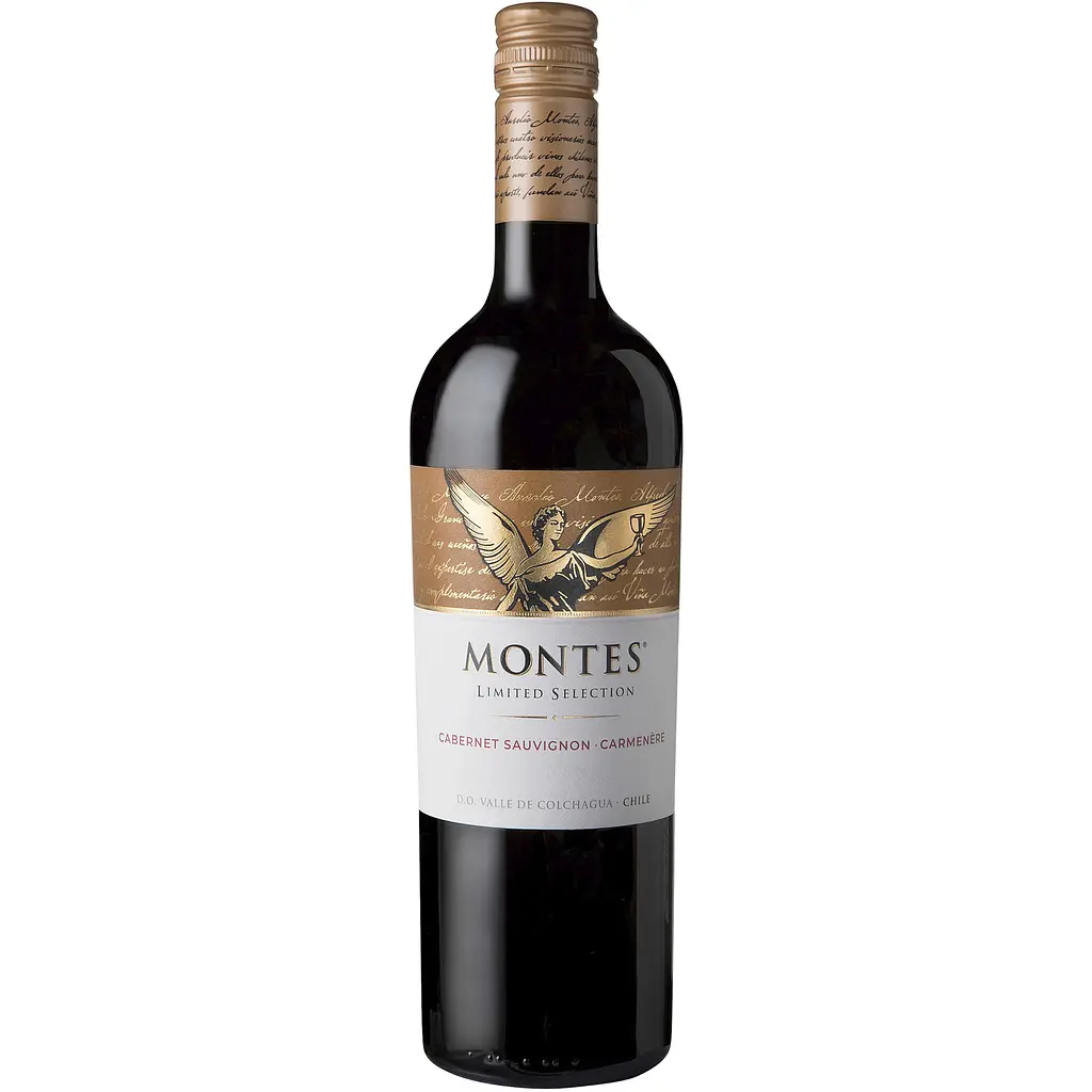 Вино Montes Limited Selection Cabernet Sauvignon Carmenere интенсивного малиново-красного цвета. Демонстрирует фруктовый аромат с доминирующими тонами спелой вишни и ежевики, а также черной сливы и сушеного инжира, дополненными нотами ванили, мускатного ореха и легким оттенком ликера. Вкус сбалансированный и обволакивающий, с невероятно мягкими танинами и свежим, шелковистым послевкусием. Во вкусовом аккорде выделяются ноты смородины, смородинового листа, оливок, специй и темного шоколада.