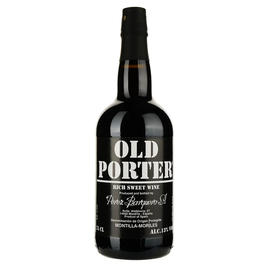 Вино Perez Barquero Old Porter Montilla-Moriles DOP - сладкий херес, изготовленный из винограда сорта Педро Хименес, подсушенного под жарким испанским солнцем. Высушенный виноград прессуют с помощью гидравлического пресса. Ферментация сусла останавливается путём добавления в вино крепкого алкоголя.