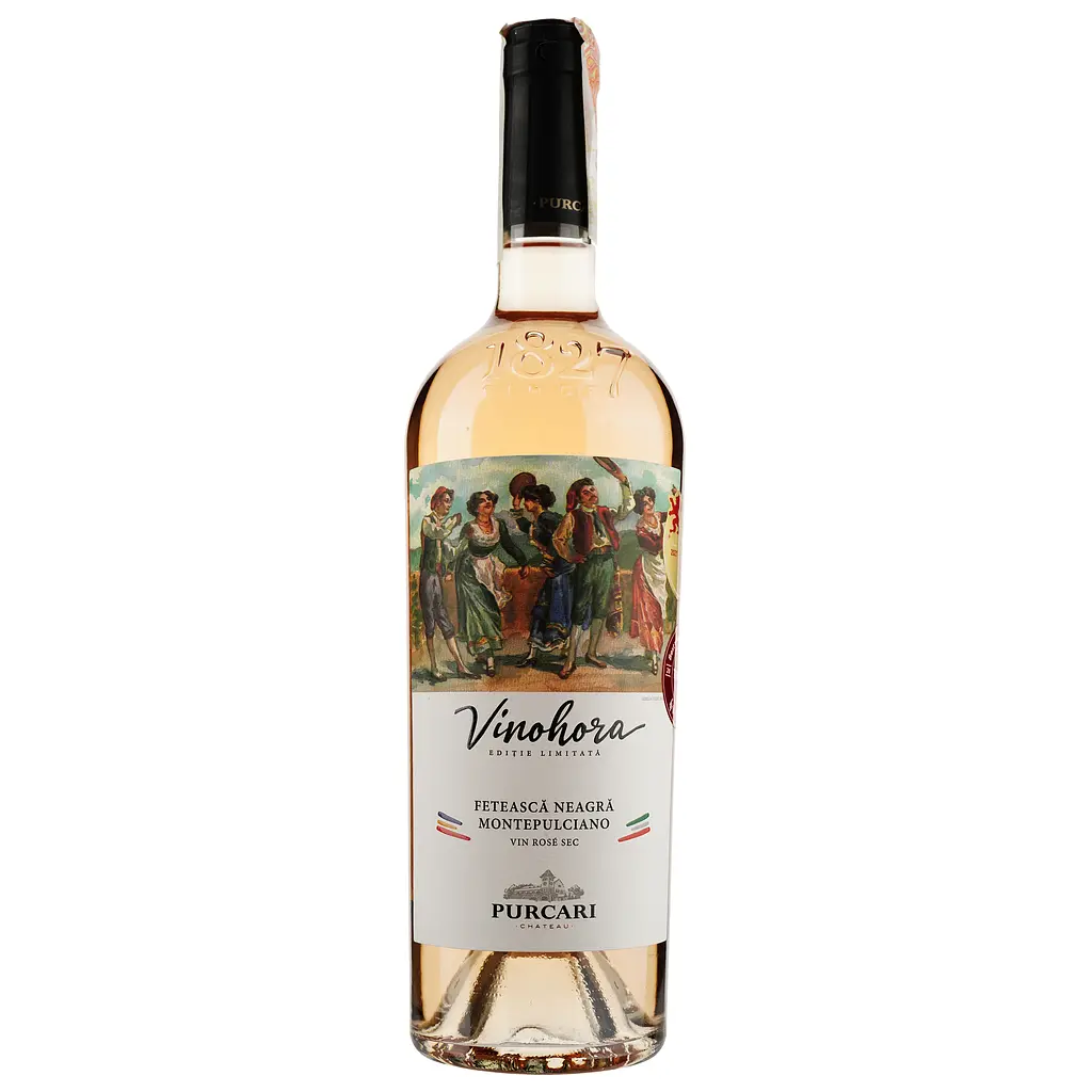 Вино Purcari (Пуркари) Vinohora Feteasca Neagra&Montepulciano отличается нежным и блестящим розовым цветом.