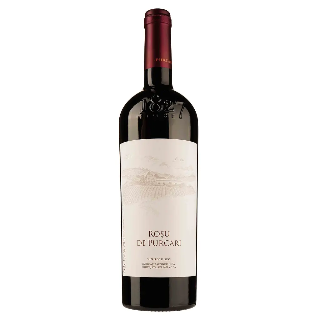 Вино Purcari (Пуркари) Rosu цвета бургунди, с оттенком спелых гранатовых ягод, изготовлено из сортов винограда средней и поздней зрелости.