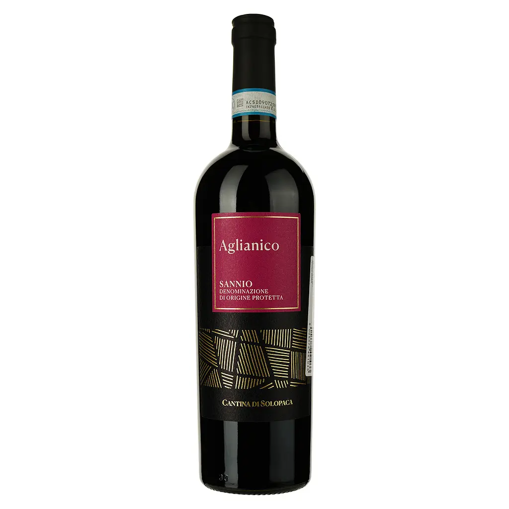 Solopaca Aglianico Sannio - это красное сухое вино, демонстрирующее яркий рубиновый цвет. Аромат нежный и стойкий, с оттенками спелых красных фруктов. Вкус сухой, гармоничный, бархатный, с ягодными и фруктовыми оттенками в длительном послевкусии.
