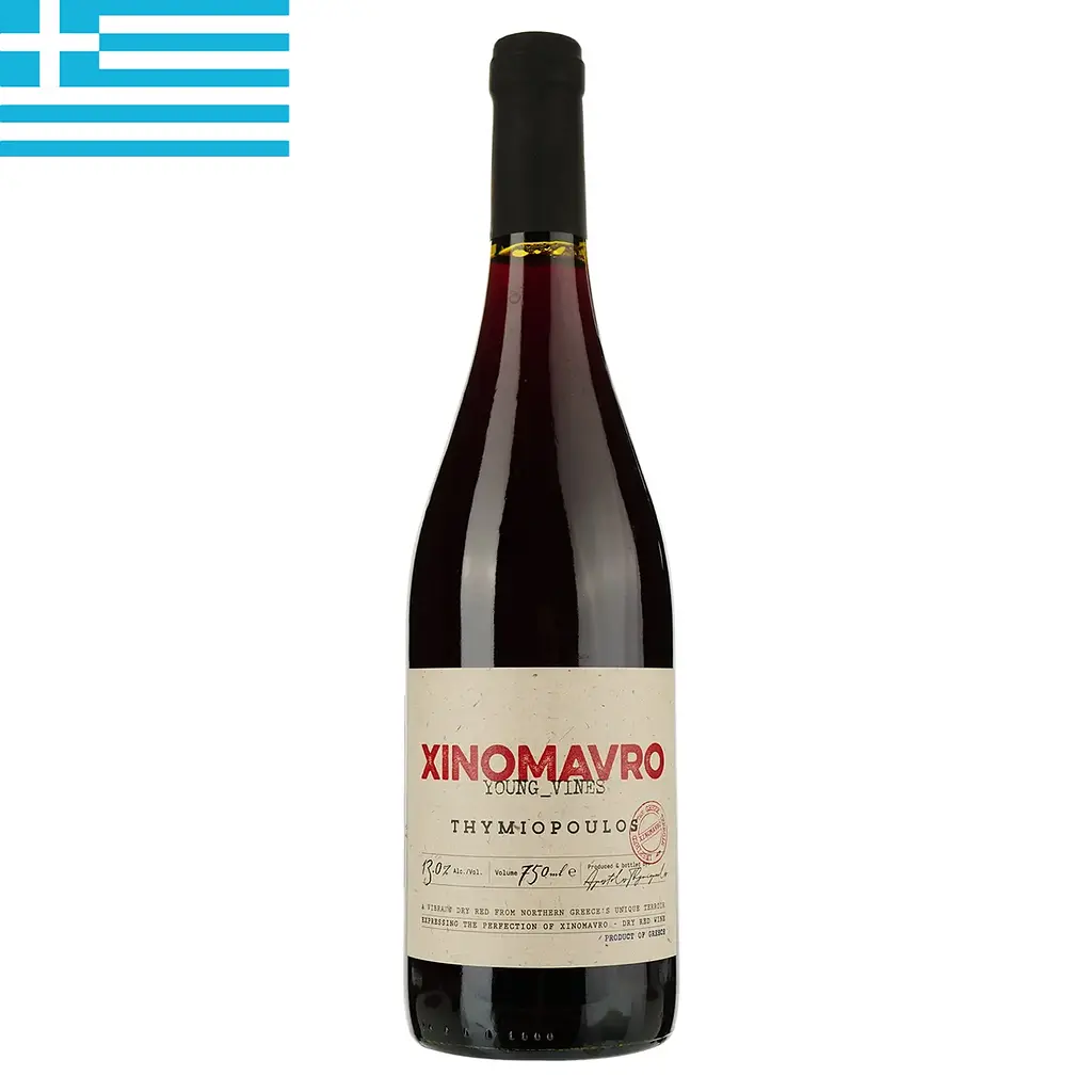 Вино Thymiopoulos (Тимопулос) Young Vines насыщенное, свежее с выразительным ароматом и яркой фруктовостью .Вино с каждым винтажом становится более тонким и элегантным. Изготавливается из автохтонного греческого винограда сорта Ксиномавро, выращенного в зоне защищенного географического наименования Македония. Виноград собирают с молодых лоз.