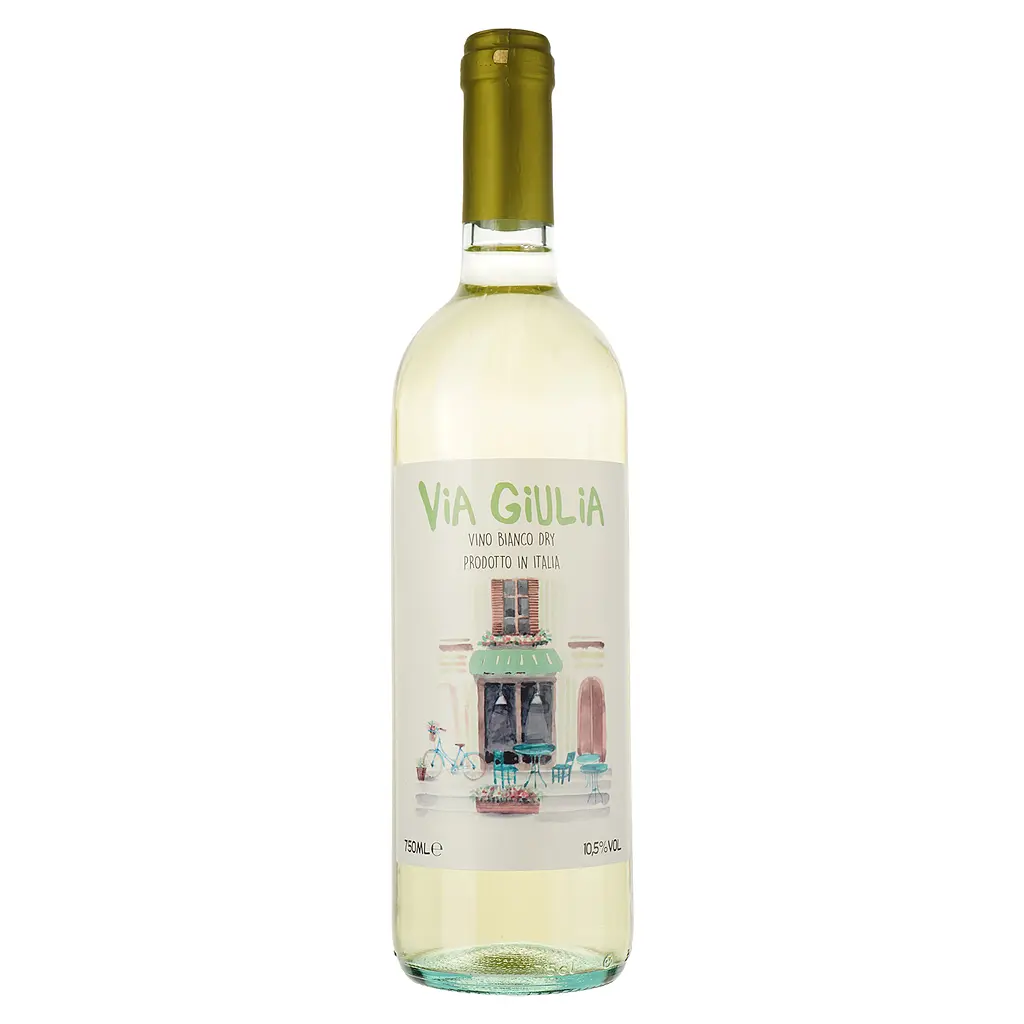 Вино Via Giulia Bianco Dry создано руками выдающихся итальянских мастеров, исключительно из натурального сырья и выдержанное в настоящих деревянных бочках. Напиток обладает хорошо сбалансированным вкусом с интенсивными нотами белых фруктов, яблока, груши. Имеет деликатный букет с цветочными ароматами, а также выраженной ноткой розового грейпфрута. Это вино прекрасно скрасит вечер, наполнив его нотками теплой и томной итальянской ночи. Как легкое и деликатное, оно подходит для повседневного употребления и идеально сочетается с простыми блюдами.