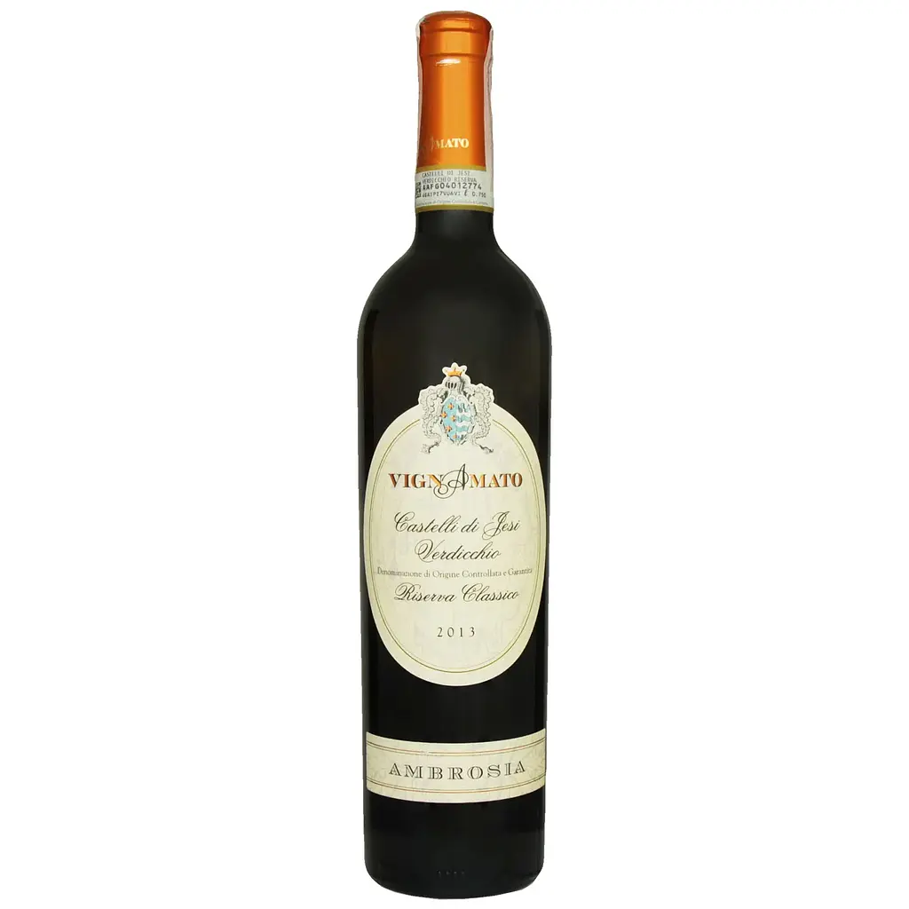 Vignamato Verdicchio Classico Riserva Ambrosia – элегантное белое вино с выразительным характером. Она имеет яркий соломенно-желтый цвет с зелеными бликами, переходящими в золотистые оттенки. Вкус полнотелый, гармоничный, с отличным балансом между свежестью и минеральностью. Во вкусе ощущаются ноты спелого яблока, сливы и легкий оттенок горького миндаля, завершающийся продолжительным фруктовым послевкусием. Вино отличается кремовой текстурой и выразительной кислотностью, что придает ему живость.