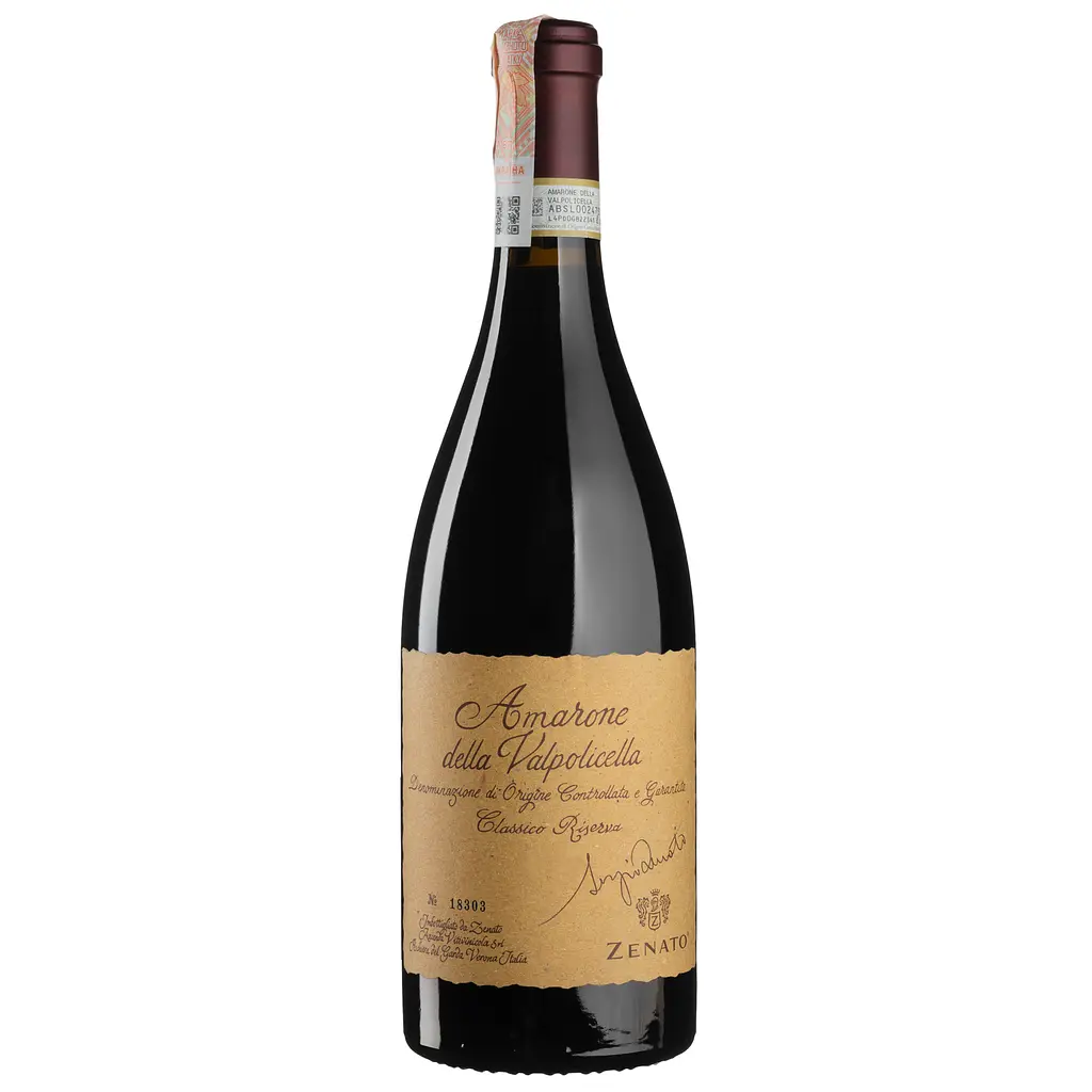 Вино Zenato (Зенато) Amarone Riserva Sergio Zenato производится исключительно в лучшие годы, со старейших виноградников поместья и выдерживается долгих 4 года в дубовых бочках. Урожай собирают вручную и тщательно сортируют, только самые спелые и здоровые гроздья помещают в деревянные ящики в хорошо вентилируемое помещение. По завершению этого периода виноград прессуют по гребнеотделению и премацерации. Сусло оставляют в контакте с кожицей на 15-20 дней для спонтанного спиртового брожения. Вино выдерживают 48 месяцев в баррелях из славонского дуба на 75 гл. После розлива вино проводит дополнительно год в бутылке перед поступлением в продажу.