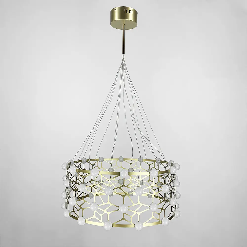 Изысканная подвесная LED люстра в металлическом корпусе золотого цвета Тип цоколя: 60 Серия: TG 01C60 Цвет основы: Золотой Размер потолочной основы: 15х6 см Цветовая температура: 3500К Максимальная высота: 155 см Минимальная высота: 50 см Материал основы: Металллл Тип крепления: Потолочное основание Мощность (Вт): 30ww