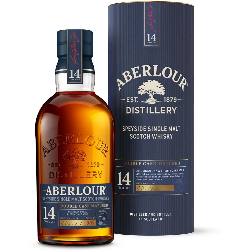 Виски Aberlour (Аберлау) 14 yo Single Malt Scotch Whisky - односолодовый виски 14-летней выдержки в двух бочках из-под хереса Олоросо и американских дубовых бочек первого наполнения. В результате получается односолодовый виски из Спейсайда с фруктовыми и пряными нотками хереса, ароматными нотками имбиря в сочетании с более декадентскими нотками богатой сливочной ванили. Вкусовой профиль богатый, но округлый. Тонкий, но пряный. Смелый, но элегантный.