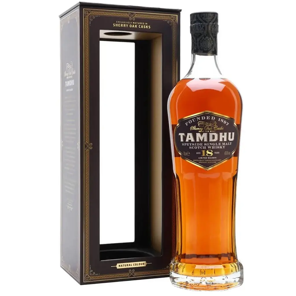 Виски Tamdhu 18yo Single Malt Scotch Whisky глубокого медного цвета. Аромат демонстрирует насыщенные темные фрукты с нотами спелой вишни и сливы. Пикантные цитрусовые ноты пронизывают нежную основу из орехового молочного шоколада и овсяных хлопьев, запеченных в меду. Во вкусе хрустящее красное яблоко сочетается с сухофруктами, а также сладкими специями в виде корицы, ванили и коричневого сахара. Продолжительное и насыщенное послевкусие сочетает в себе пряное тушеное яблоко и безошибочный оттенок шерри.