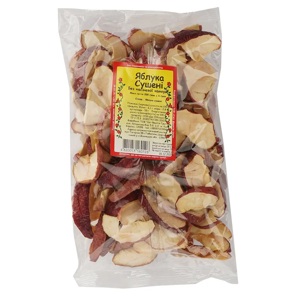 Изготовленные из украинских яблок на конвективной сушилке при температуре 60 градусов методом, позволяющим полностью сохранить все витамины, которые есть в свежих яблоках.