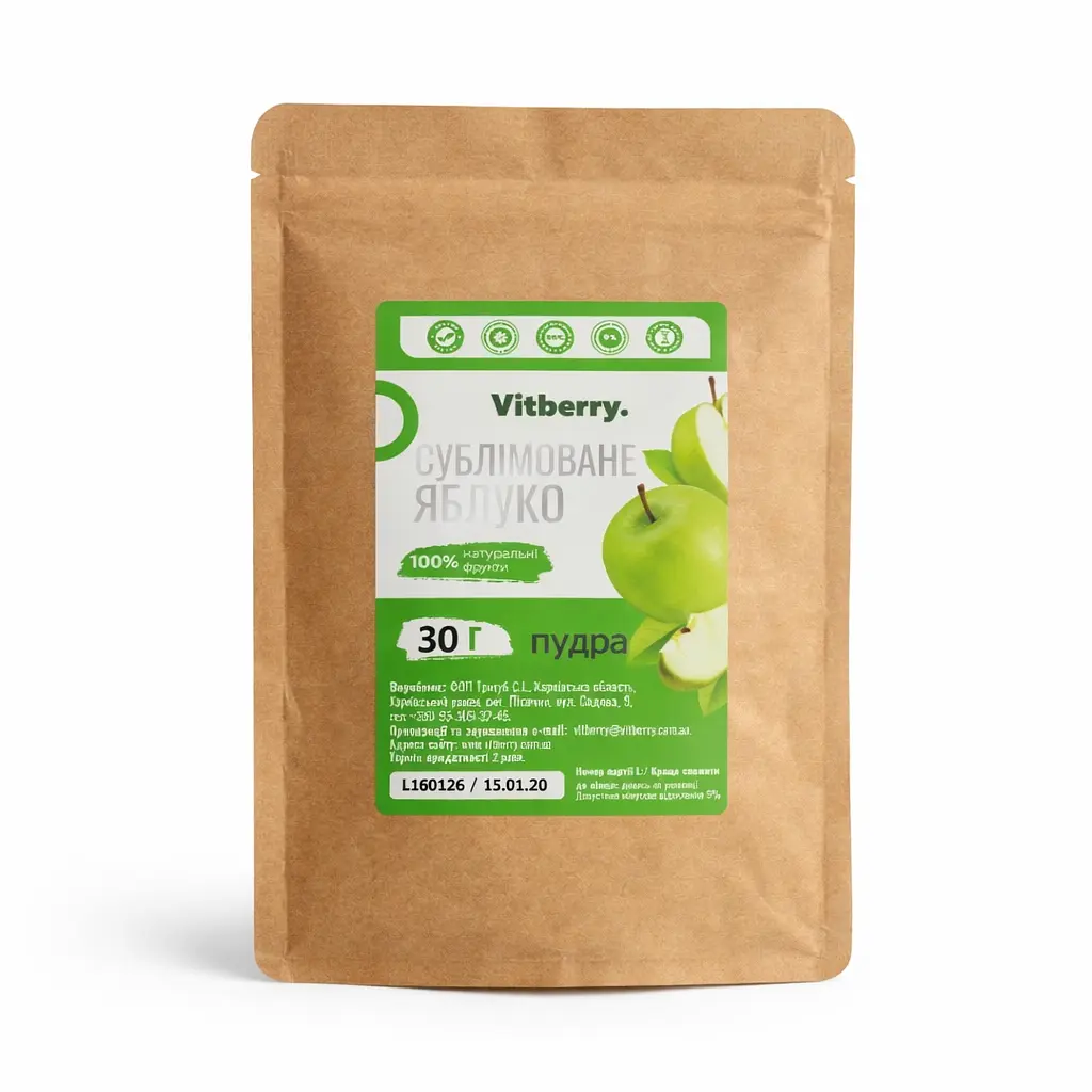 Сублимированный порошок яблока это 100% натуральный продукт, полученный путем вакуумного удаления влаги из спелых плодов. Технология сублимации позволяет полностью сохранить клетчатку, природные сахара и витаминный комплекс свежего яблока. Из-за отсутствия воды 100 граммов порошка по своей концентрации полезных веществ эквивалентны почти одному килограмму свежих яблок.