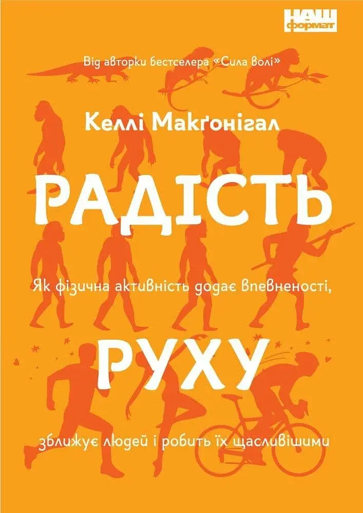 У вашій голові утворилася зв’язка: тренування — це страждання. Але це не обов’язково так, про що свідчить книжка «Радість руху». Келлі Макґоніґал — психологиня і тренерка з 20-річним стажем — описує, як рух змінює настрій людини, а тренування рятують від стресу й депресії. Вона розповідає про «молекули надії», ейфорію бігуна, корисну залежність і міцну дружбу між людьми, які тренуються в одній команді.