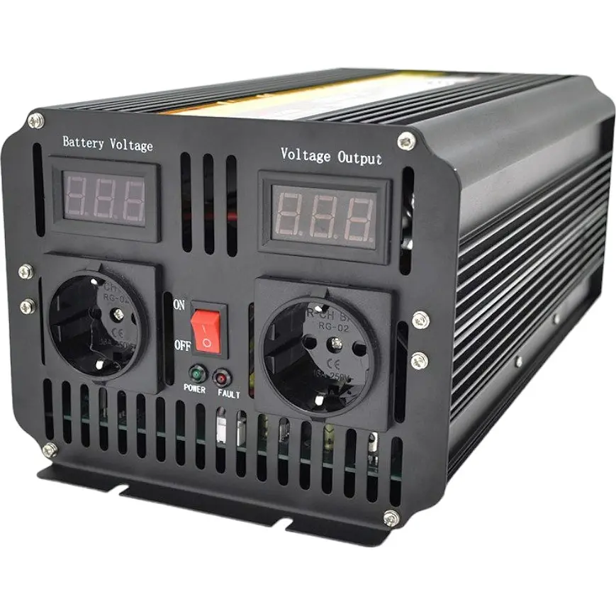 Инвертор напряжения 24/220V Powermaster PWR 2000W с модифицированной синусоидой, 2 Shuko, клеммы. Предназначен для преобразования постоянного тока 24 В в переменный ток 220В / 50Гц. Используется для зарядки и работы: ноутбуков, видеокамер, телефонов, всевозможной аудио и видеотехники и прочих электроприборов. Встроенная защита от перегрузок, температурная защита, звуковое оповещение при низком входном напряжении.