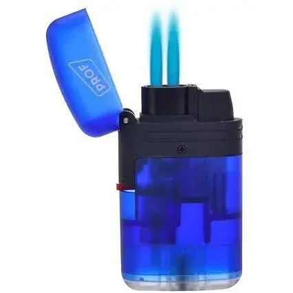 Зажигалка PROF Double Jet Flame Transparent Blue. Зажигалка с заманчивым дизайном за счет собственного прозрачного корпуса завлекает внимание и завышенный энтузиазм. Изготовлена из качественного термостойкого пластика, обладающего антискользящим эффектом, за счет чего уверенно держится в руке. Регулятор интенсивности пламени и возможность дозаправки производит этот аксессуар по истине надежным помощником на все случаи жизни. Двойное турбо пламя не боится погодных условий в виде дождя или ветра.